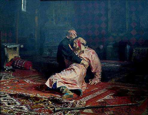 Все мы знаем картину «Иван Грозный и сын его Иван», называя её обычно «Иван грозный убивает своего сына». Между тем, убийство Иваном Васильевичем своего наследника, весьма спорный факт. Так, в 1963 году в Архангельском соборе Московского Кремля была вскрыты гробницы Ивана Грозного и его сына. Исследования позволили утверждать, что царевич Иоанн был отравлен. Содержание яда в его останках во много раз превышает допустимую норму. Интересно, что тот же яд был найден и в костях Ивана Васильевича. Ученые заключили, что царская семья на протяжении нескольких десятилетий была жертвой отравителей. Иван Грозный не убивал своего сына. Именно такой версии придерживался, например, обер-прокурор Святейшего Синода Константин Победоносцев. Увидев на выставке знаменитую картину Репина, он был возмущен и писал императору Александру III: «Нельзя назвать картину исторической, так как этот момент... чисто фантастический». Версия же об убийстве была основана на рассказах папского легата Антонио Поссевино, которого сложно назвать незаинтересованным лицом. На картину однажды было совершено настоящее покушение. 16 января 1913 года двадцатидевятилетний иконописец-старообрядец Абрам Балашов нанес ей три удара ножом, после чего лица изображенных на картине Иванов Илье Репину пришлось писать фактически заново. После происшествия, тогдашний хранитель Третьяковской галереи Хруслов, узнав о вандализме, бросился под поезд.