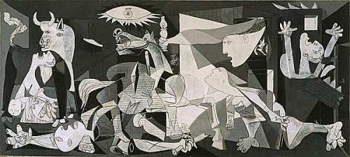 Пикассо написал «Гернику» в 1937 году. Картина посвящена бомбардировке города Герника. Говорят, когда Пикассо в 1940 году вызвали в гестапо и спросили про «Гернику»: «Это сделали вы?», художник ответил:"Нет, это сделали вы». Огромную фреску Пикассо писал не дольше месяца, работая по 10-12 часов в сутки. «Герника» считается отражением всего ужаса фашизма, бесчеловечной жестокости. Те, кто видел картину своими глазами, утверждают, что она порождает тревогу, а иногда и панику.