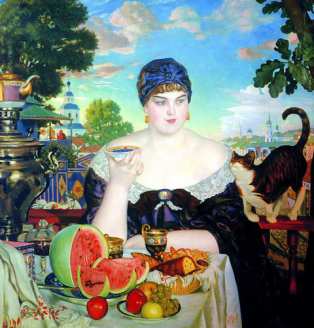 Галина Адеркас - «Купчиха за чаем» (1918). Б.М. Кустодиев